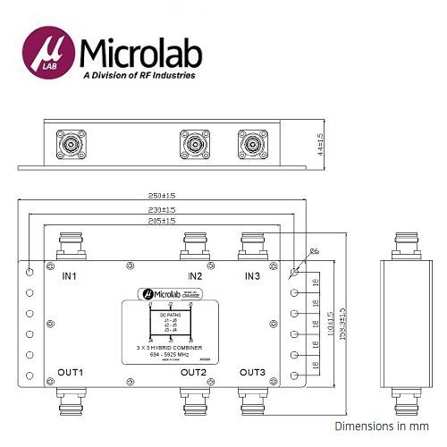 Microlab CM-680E 混合合路器專為寬頻 5G 部署而設計。此 3×3 混合合路器涵蓋 617 至 5,925 MHz 的超寬頻範圍,且體積小巧,便於隱藏。該混合合路器主要用於在其工作頻段內將多達三個無線載波合併至多個天線饋線或分配電纜。未使用的輸入與輸出端口應接上低 PIM 負載終端。